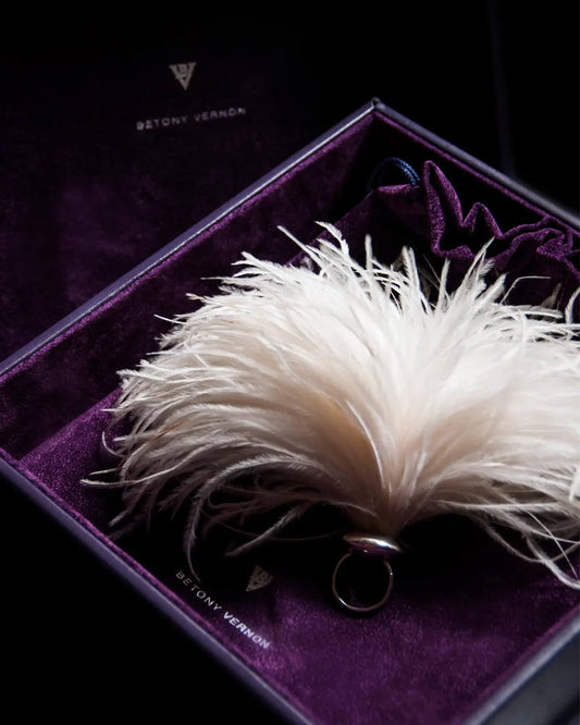 Ostrich Feather Puff White Ring - Sterling Silver 925 by Betony Vernon