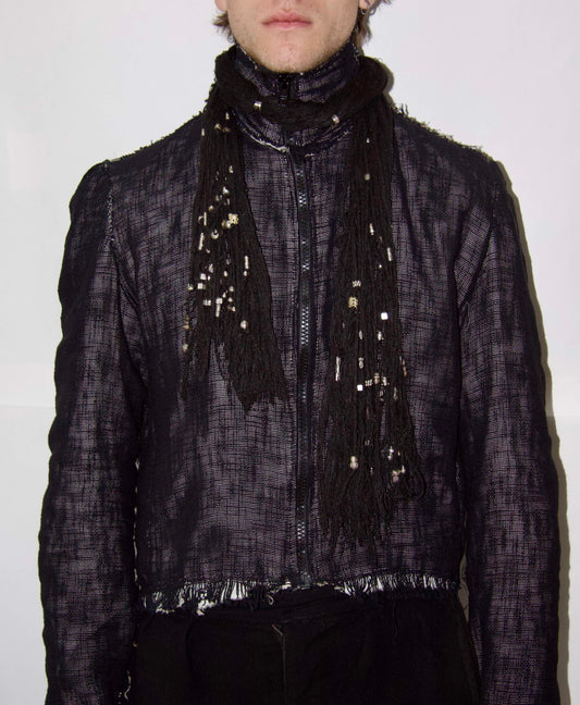 Deconstructed Tussah Silk Scarf with Silver Metal Beads by Carraic