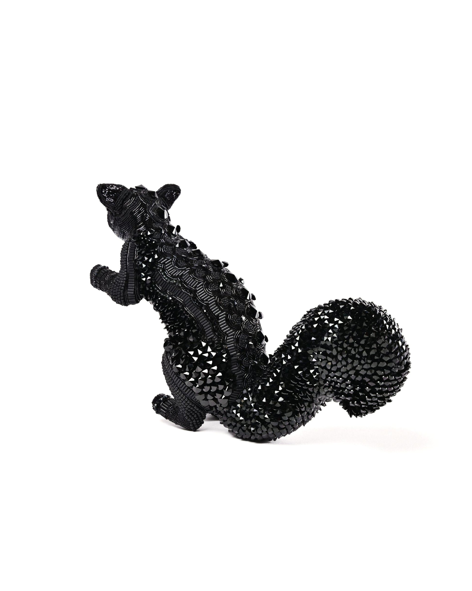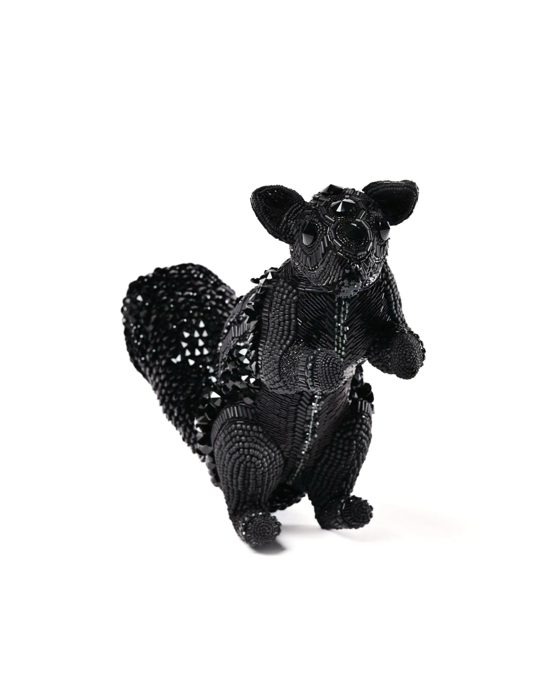 The Tower Squirrel by Valdes Designs is part of The Bedtime Stories Series which started in 2008, while experimenting new territories and exploring new art forms, applying the intricately woven through beadwork, embroidery, and embellishment honoured techniques used in the brand’s high fashion accessories line.